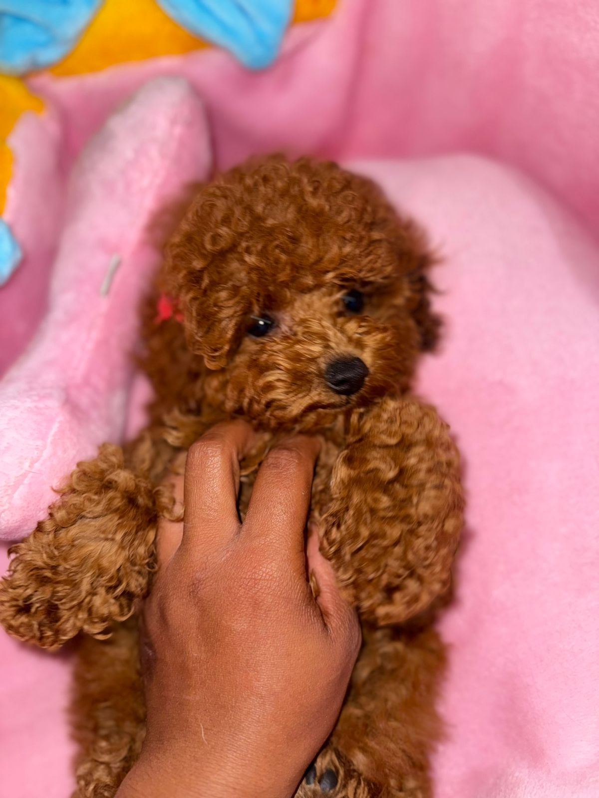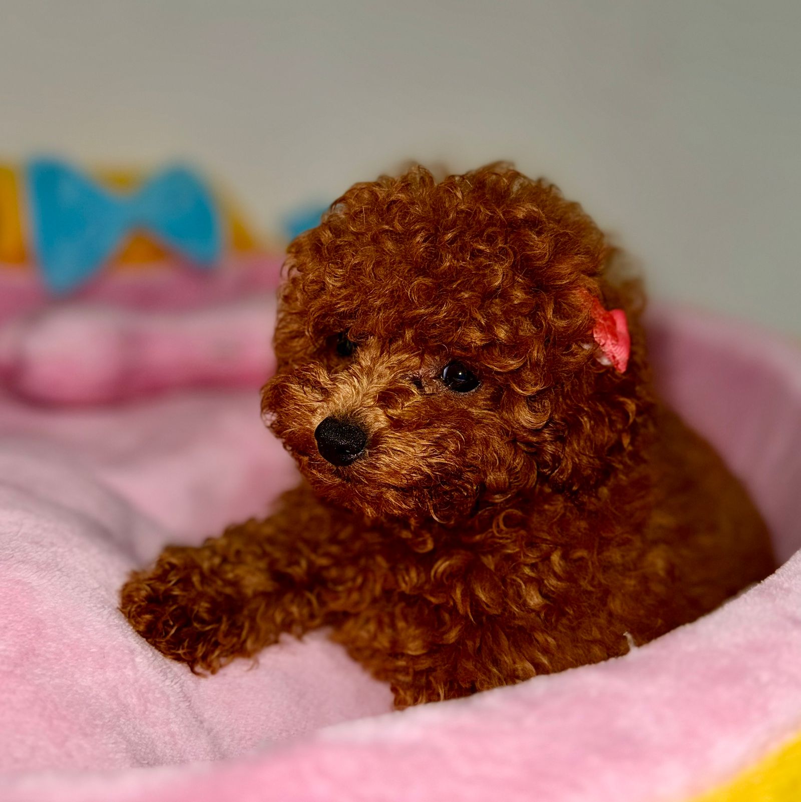 Con su apariencia tierna, su energía equilibrada y su temperamento dulce, este Caniche Mini Toy rojo pimentón es el compañero perfecto para quienes buscan amor, estilo y encanto en un formato pequeño.